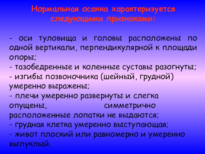 Слайд 9Нормальная осанка характеризуется следующими признаками: