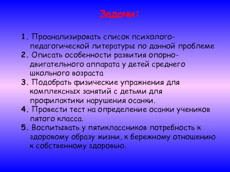 5. Воспитывать у пятиклассников потребность к здоровому образу жизни, к бережному отношению к собственному здоровью.