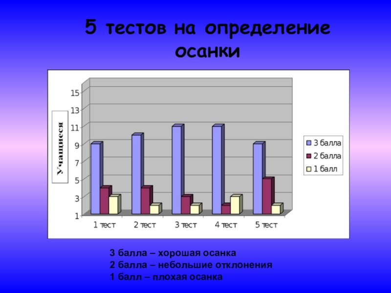 профилактики нарушения осанки, а также посредством теста научить ребят правильно определять осанку, то можно повысить эффективность формирования правильной осанки.