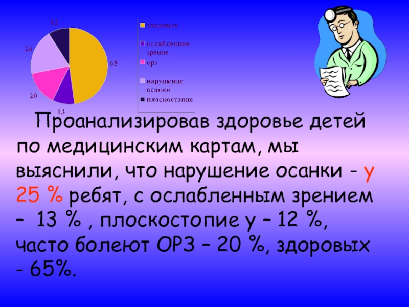 Слайд 2 Проанализировав здоровье детей по медицинским картам, мы выяснили, что