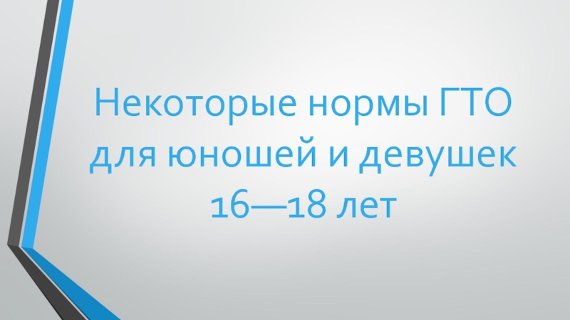 Слайд 7Некоторые нормы ГТО для юношей и девушек 16—18 лет