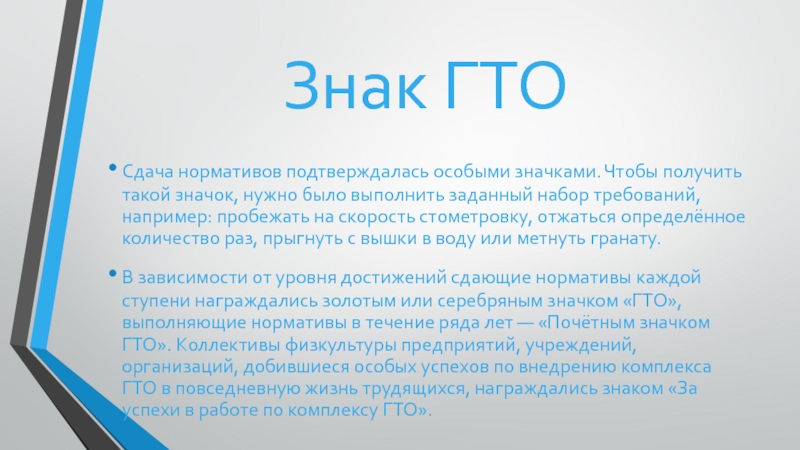 Слайд 3Знак ГТО