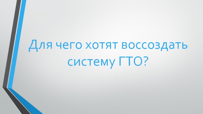 Слайд 14Для чего хотят воссоздать систему ГТО?