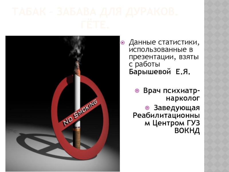 Данные статистики, использованные в презентации, взяты с работы Барышевой Е.Я.