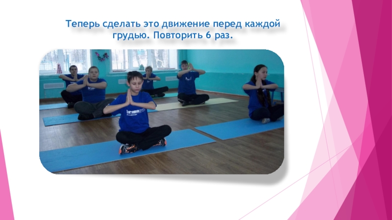 Слайд 13Теперь сделать это движение перед каждой грудью. Повторить 6 раз.