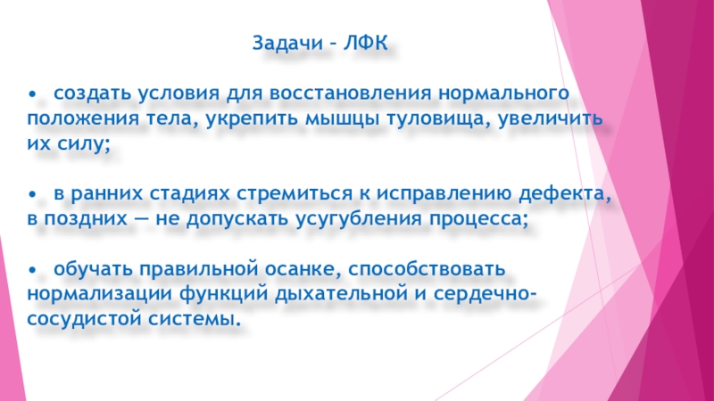 • создать условия для восстановления нормального положения тела, укрепить мышцы туловища, увеличить их силу;