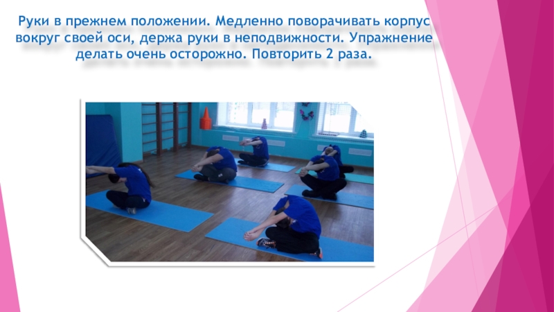 Слайд 16Руки в прежнем положении. Медленно поворачивать корпус вокруг своей оси, держа