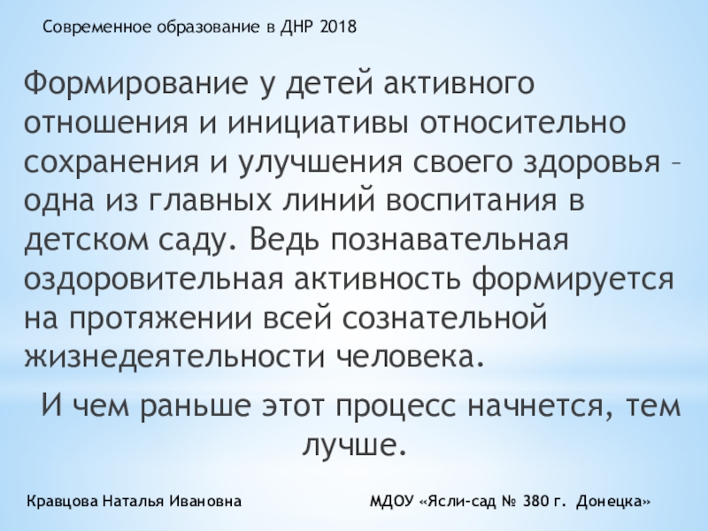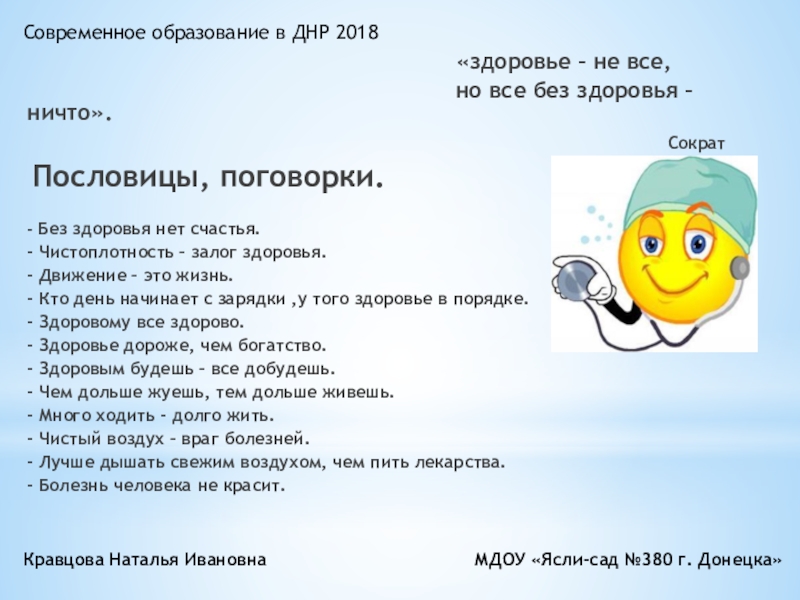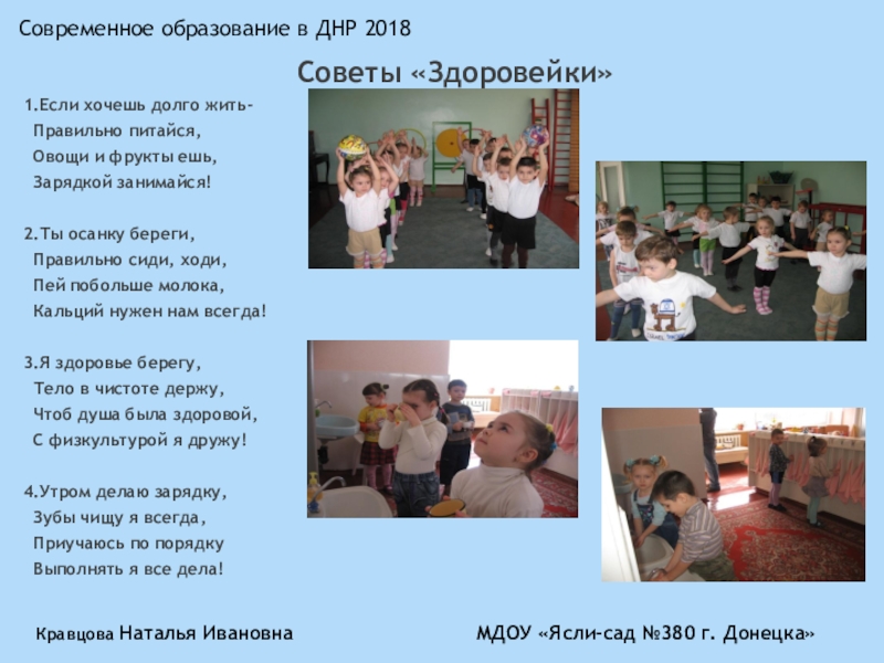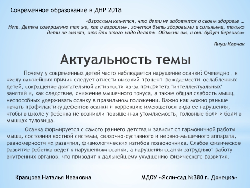 «Взрослым кажется, что дети не заботятся о своем здоровье … Нет. Детям совершенно так же, как и взрослым, хочется быть здоровыми и сильными, только дети не знают, что для этого надо делать. Объясни им, и они будут беречься»