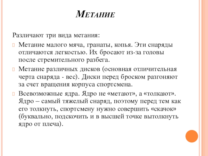 Метание малого мяча, гранаты, копья. Эти снаряды отличаются