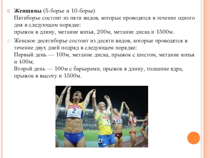Слайд 36Женщины (5-борье и 10-борье)
