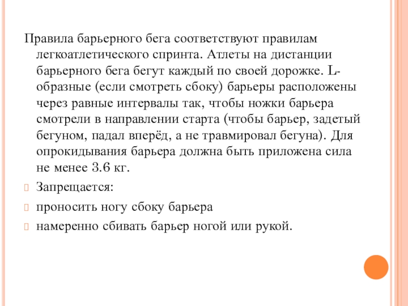 Слайд 11Правила барьерного бега соответствуют правилам легкоатлетического спринта. Атлеты на дистанции барьерного