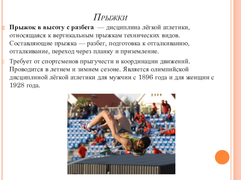 Прыжок в высоту с разбега — дисциплина лёгкой атлетики, относящаяся к