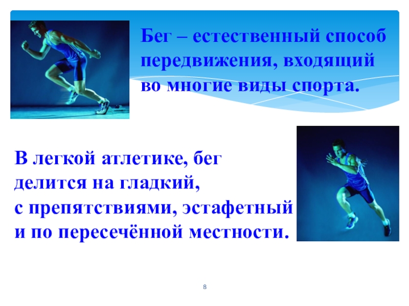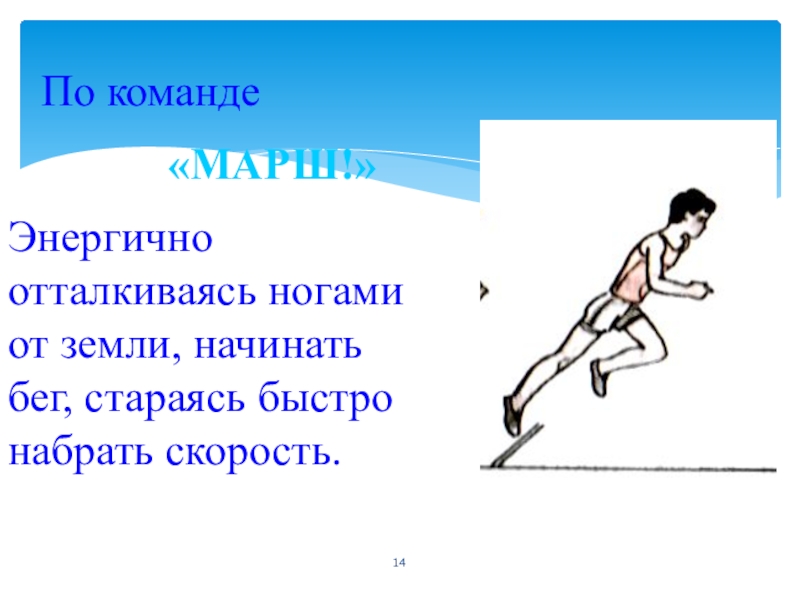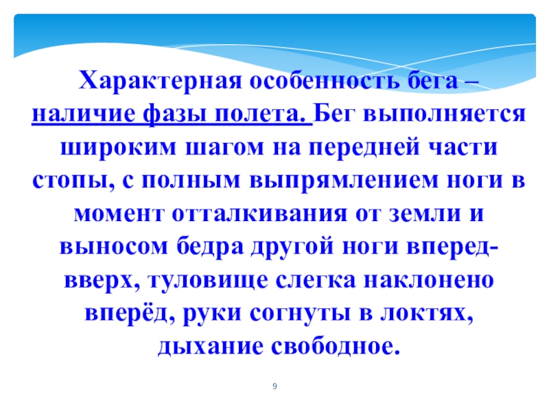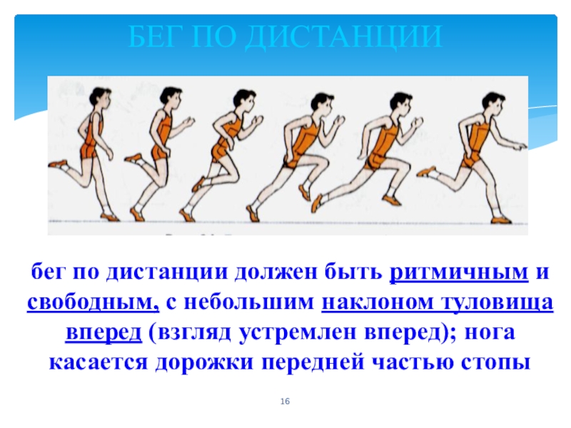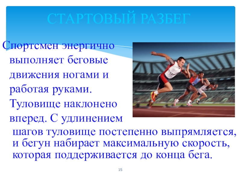 шагов туловище постепенно выпрямляется, и бегун набирает максимальную скорость, которая поддерживается до конца бега.