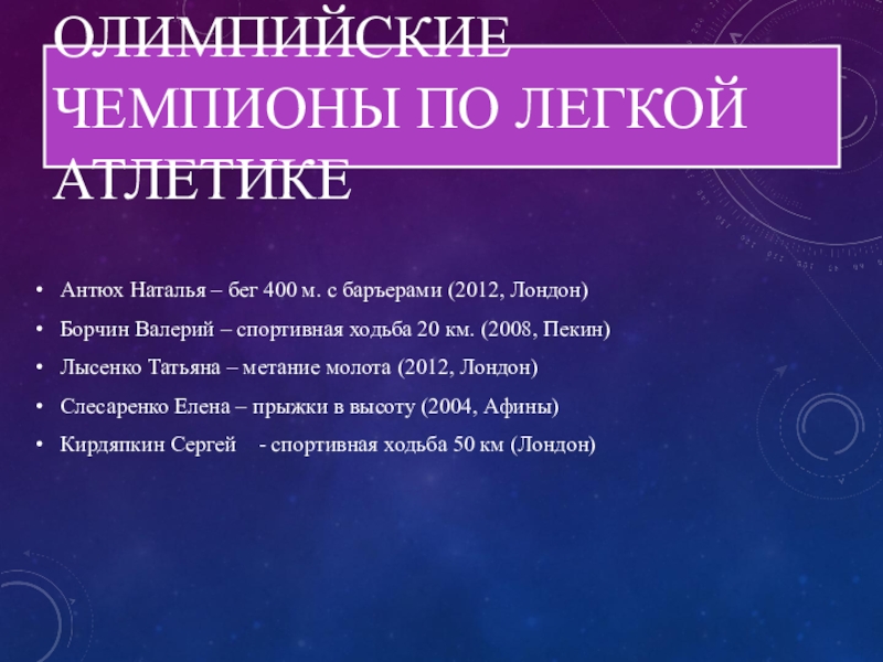 Слайд 15ОЛИМПИЙСКИЕ ЧЕМПИОНЫ ПО ЛЕГКОЙ АТЛЕТИКЕ