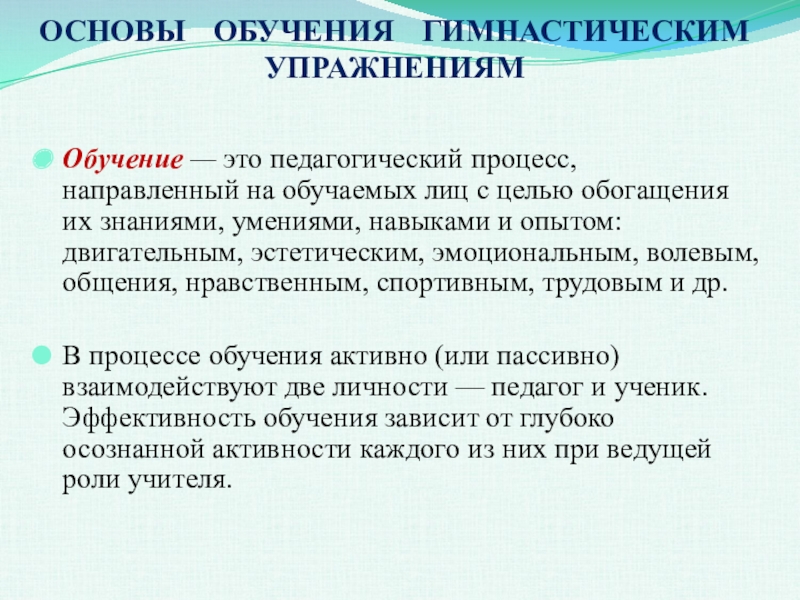 ОСНОВЫ ОБУЧЕНИЯ ГИМНАСТИЧЕСКИМ УПРАЖНЕНИЯМ