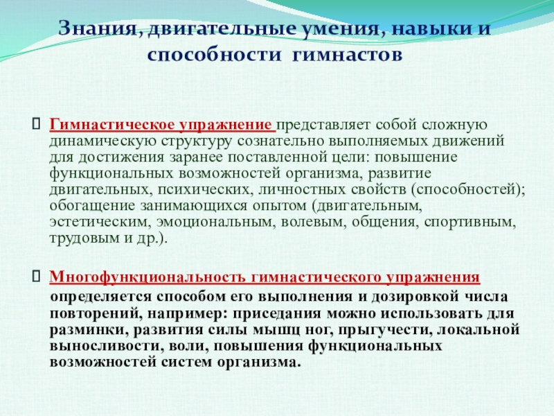 Гимнастическое упражнение представляет собой сложную динамическую структуру сознательно выполняемых движений для