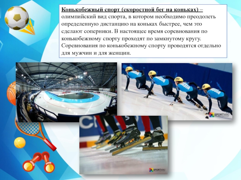 Слайд 20Конькобежный спорт (скоростной бег на коньках) – олимпийский вид спорта, в