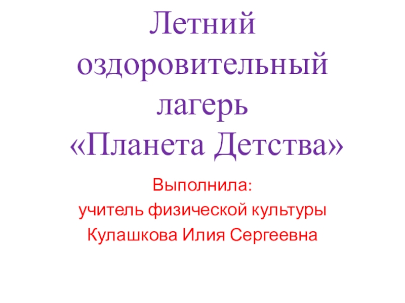 Летний оздоровительный лагерь  «Планета Детства»Выполнила: учитель физической культурыКулашкова Илия Сергеевна