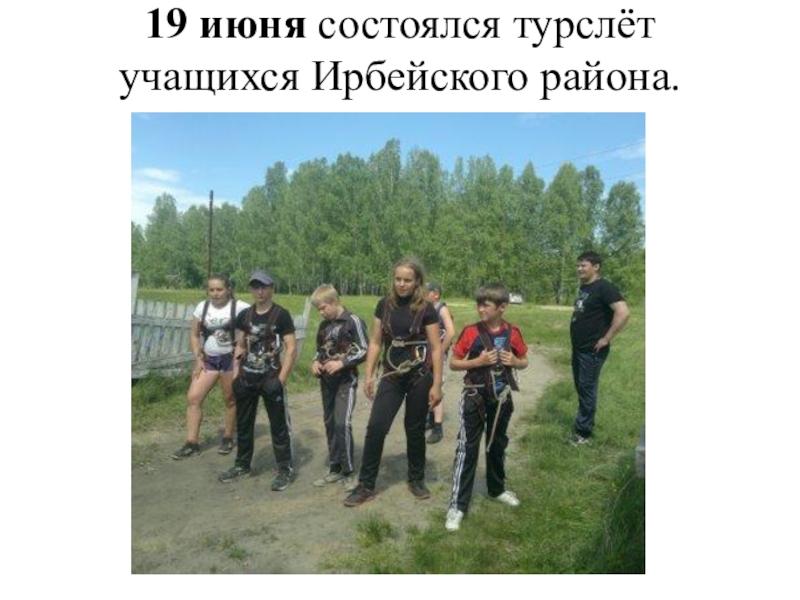 Слайд 919 июня состоялся турслёт учащихся Ирбейского района.