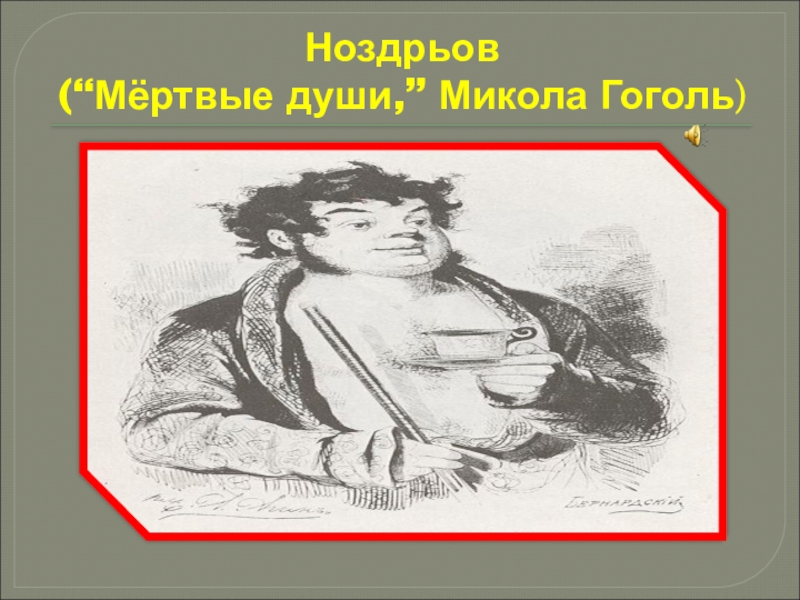 Слайд 15Ноздрьов (“Мёртвые души,” Микола Гоголь)