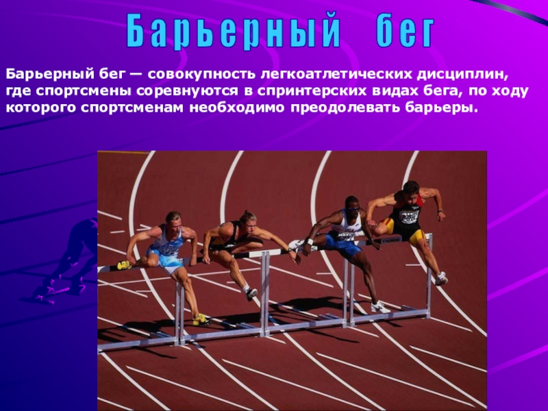Барьерный бег — совокупность легкоатлетических дисциплин, где спортсмены соревнуются в спринтерских видах бега, по ходу которого спортсменам необходимо преодолевать барьеры.
