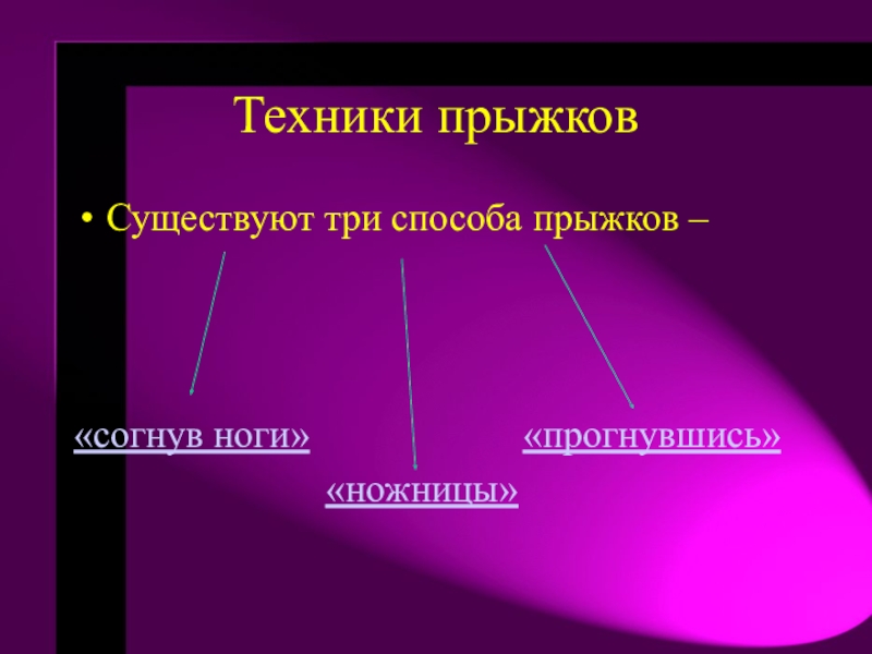 в коленном суставе. Начинающим прыгунам и спортсменам с недостаточным развитием силы ног не рекомендуется искусственно сгибать ногу в колене, так как прыгун может не справиться с воздействующими на него силами реакции опоры.