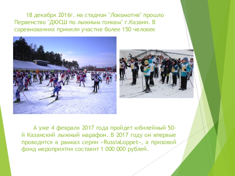 18 декабря 2016г. на стадион "Локомотив" прошло Первенство "ДЮСШ по лыжным гонкам" г.Казани. В соревнованиях приняли участие более 150 человек
