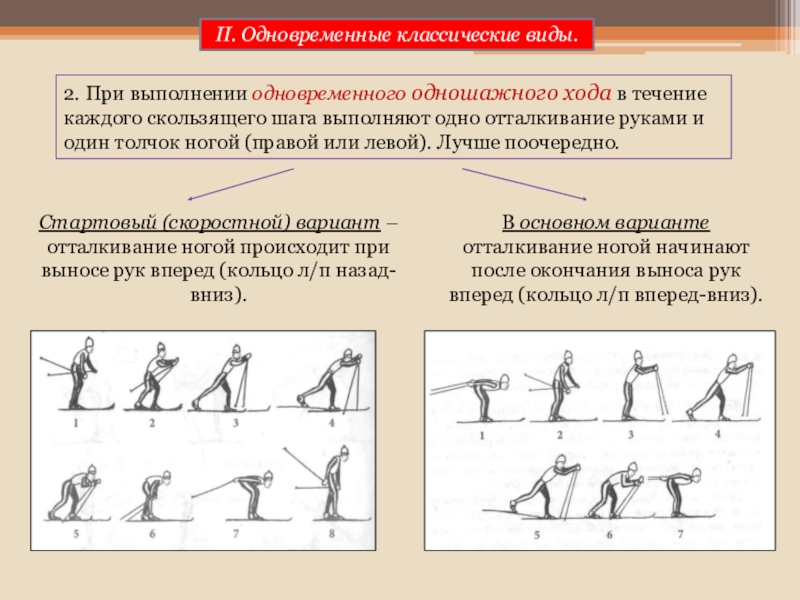 2. По количеству шагов в каждом цикле движений лыжные ходы классифицируют на: