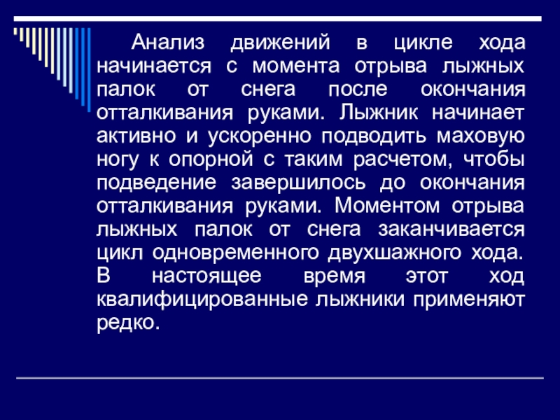 Слайд 16 Анализ движений в цикле хода начинается с момента отрыва лыжных палок
