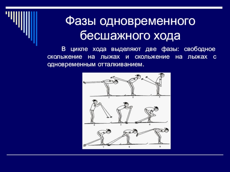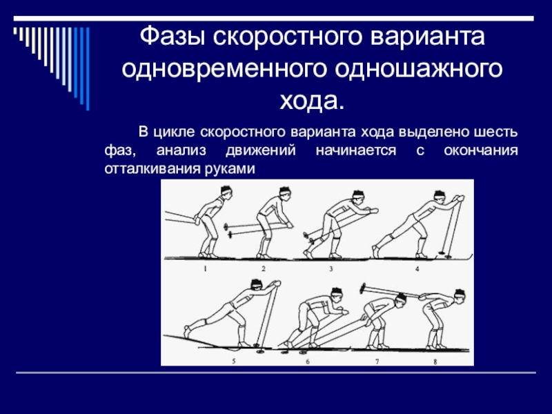 Слайд 13Фазы скоростного варианта одновременного одношажного хода.
