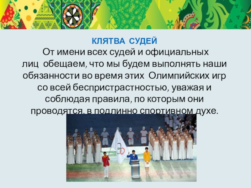 Слайд 26КЛЯТВА АТЛЕТОВ