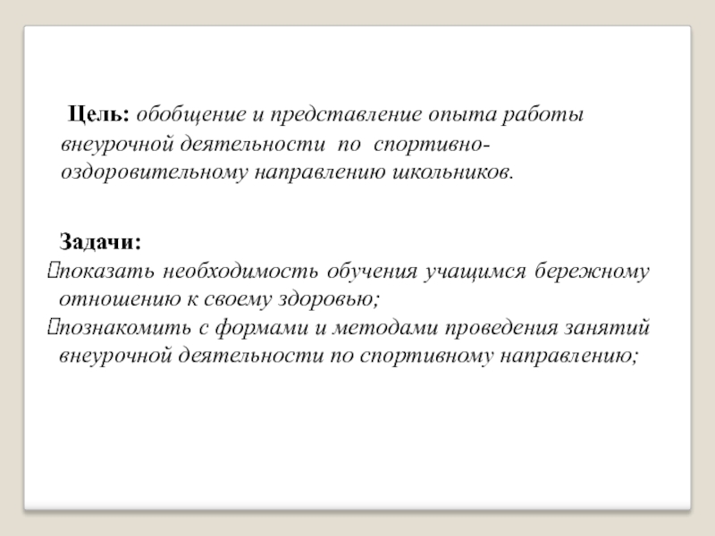познакомить с формами и методами проведения занятий внеурочной деятельности по спортивному направлению;
