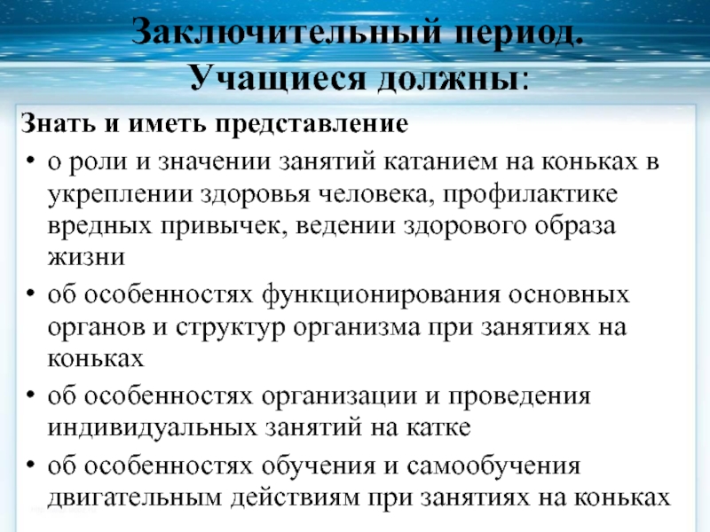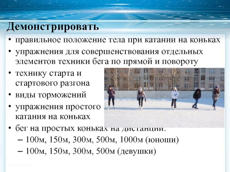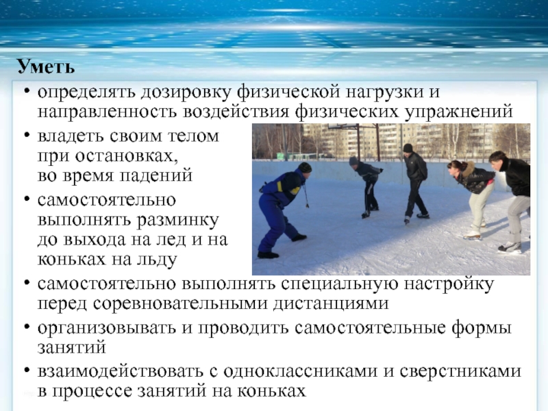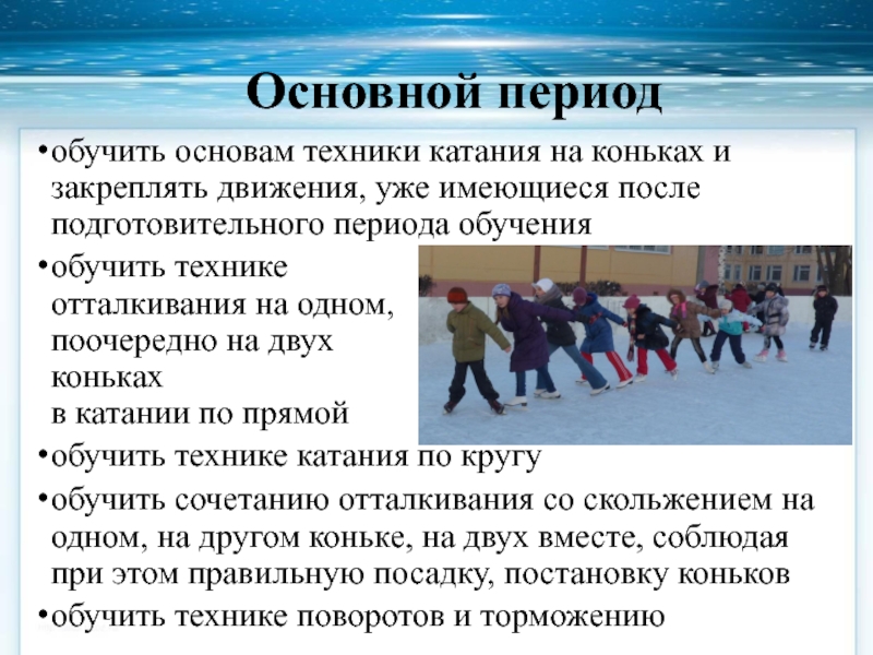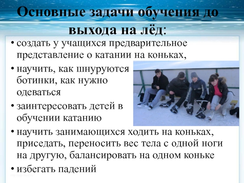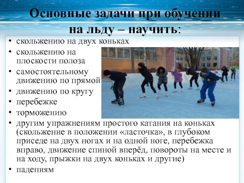 Слайд 12Основные задачи при обучении на льду – научить: