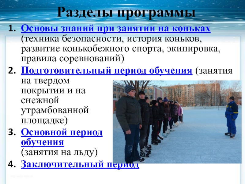 Основы знаний при занятии на коньках (техника безопасности, история коньков,