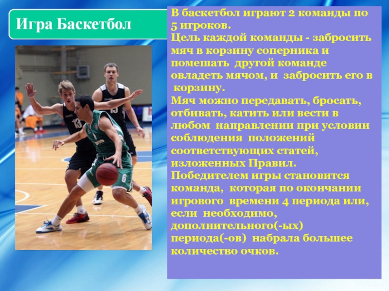 1). формировать представление о баскетболе как важнейшем компоненте физической культуры;