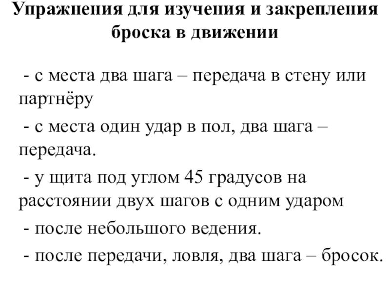 Слайд 33Упражнения для изучения и закрепления броска в движении