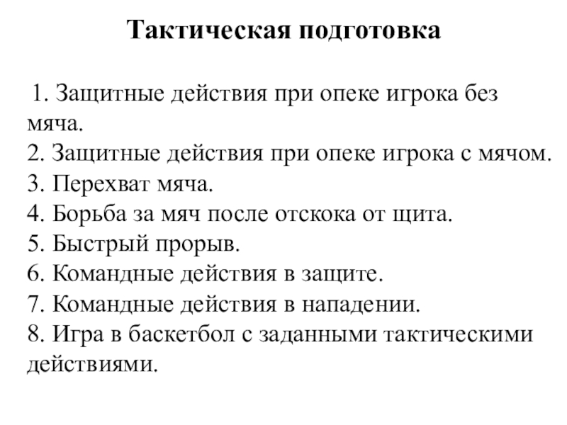 8. Игра в баскетбол с заданными тактическими действиями.