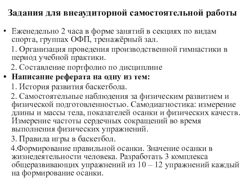 Слайд 42Задания для внеаудиторной самостоятельной работы