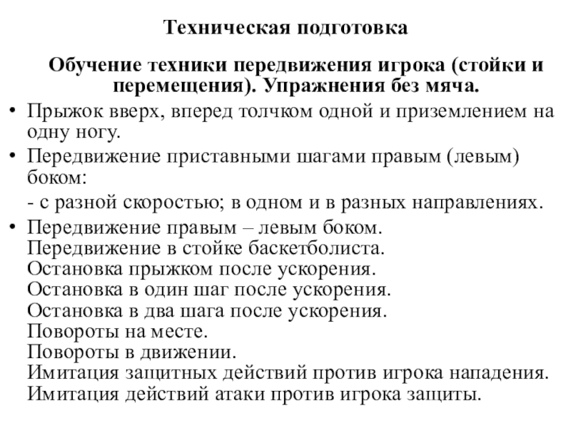 Обучение техники передвижения игрока (стойки и перемещения). Упражнения