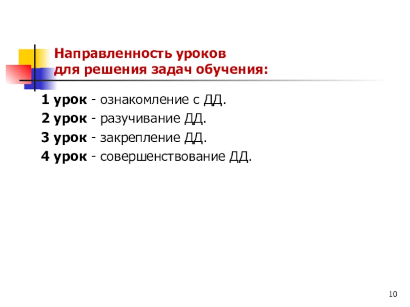 Направленность уроков для решения задач обучения:1 урок - ознакомление с ДД.2 урок - разучивание ДД.3 урок -
