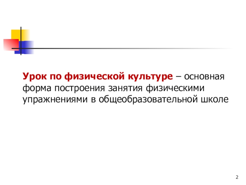 Слайд 2Урок по физической культуре – основная форма построения занятия физическими упражнениями