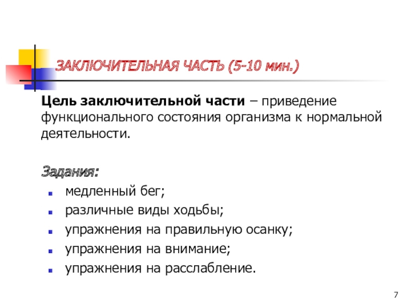 Слайд 7ЗАКЛЮЧИТЕЛЬНАЯ ЧАСТЬ (5-10 мин.)