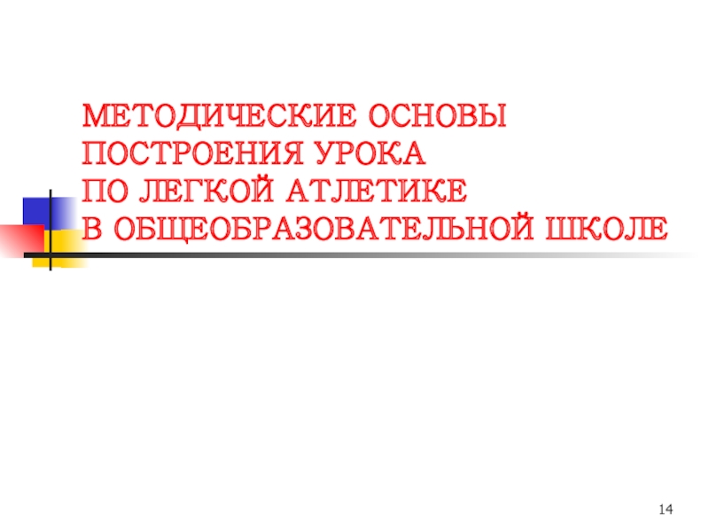 Слайд 14МЕТОДИЧЕСКИЕ ОСНОВЫ ПОСТРОЕНИЯ УРОКА ПО ЛЕГКОЙ АТЛЕТИКЕ В ОБЩЕОБРАЗОВАТЕЛЬНОЙ ШКОЛЕ