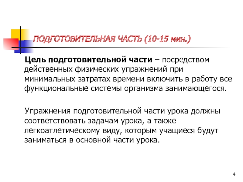 Слайд 4ПОДГОТОВИТЕЛЬНАЯ ЧАСТЬ (10-15 мин.)