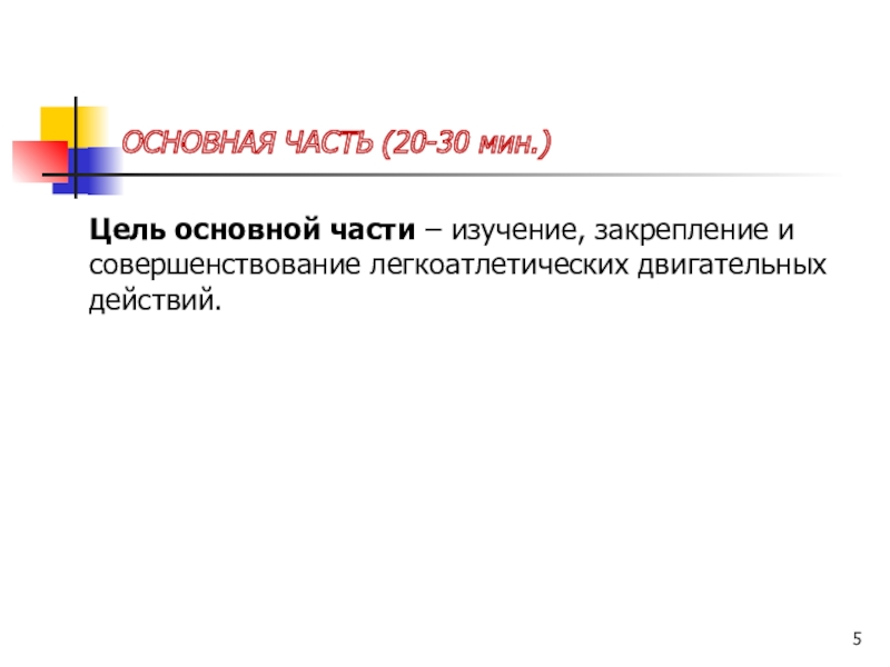 Слайд 5ОСНОВНАЯ ЧАСТЬ (20-30 мин.)