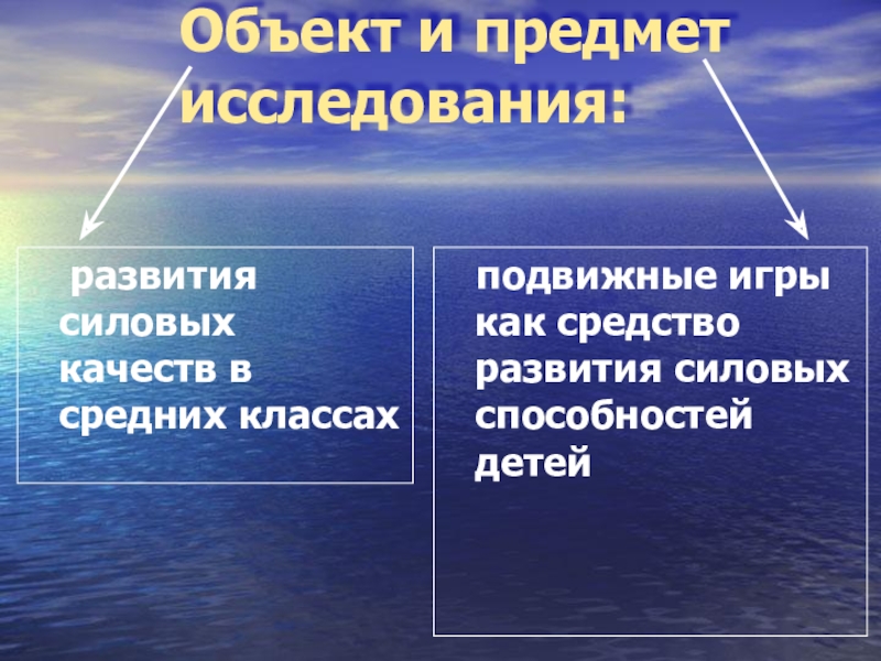 Объект и предмет исследования:	развития силовых качеств в средних классах  подвижные игры как средство развития силовых способностей