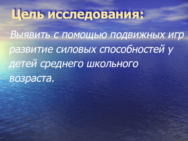Цель исследования:  Выявить с помощью подвижных игр развитие силовых способностей у детей среднего школьного возраста.