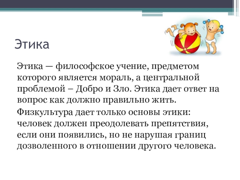 Физкультура дает только основы этики: человек должен преодолевать препятствия, если они появились, но не нарушая границ дозволенного в отношении другого человека.