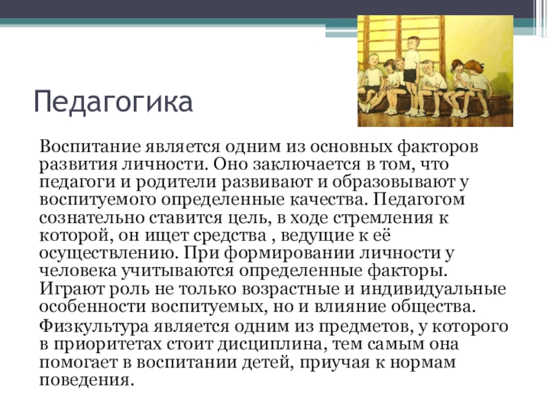 Воспитание является одним из основных факторов развития личности. Оно заключается в