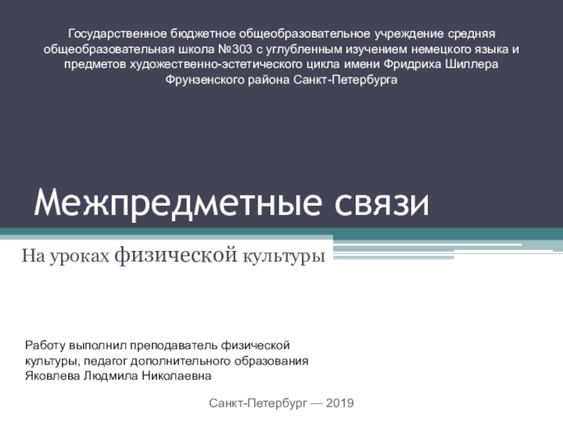 Государственное бюджетное общеобразовательное учреждение средняя общеобразовательная школа №303 с углубленным изучением немецкого языка и предметов художественно-эстетического цикла имени Фридриха Шиллера Фрунзенского района Санкт-Петербурга